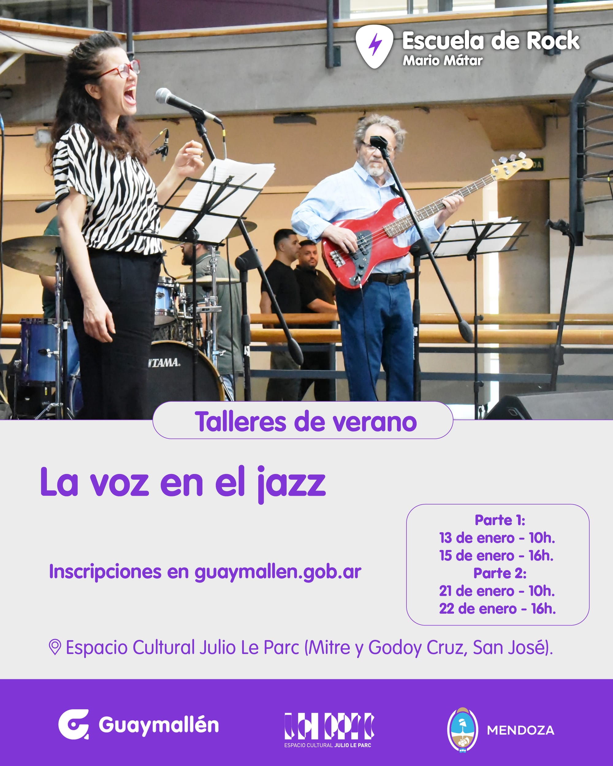 Estas actividades forman parte de la propuesta de verano de la Escuela de Rock Mario Matar, que busca promover la formación artística, el intercambio de saberes y el acceso gratuito a espacios de aprendizaje musical.
